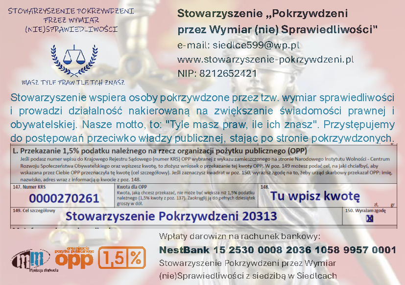W dniu 17 stycznia 2023 roku do Prezydenta RP została wniesiona petycja w interesie pokrzywdzonych przez Organy Państwa w osobach prokuratorów i przede wszystkim sędziów.